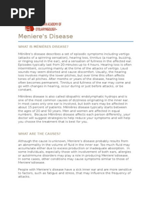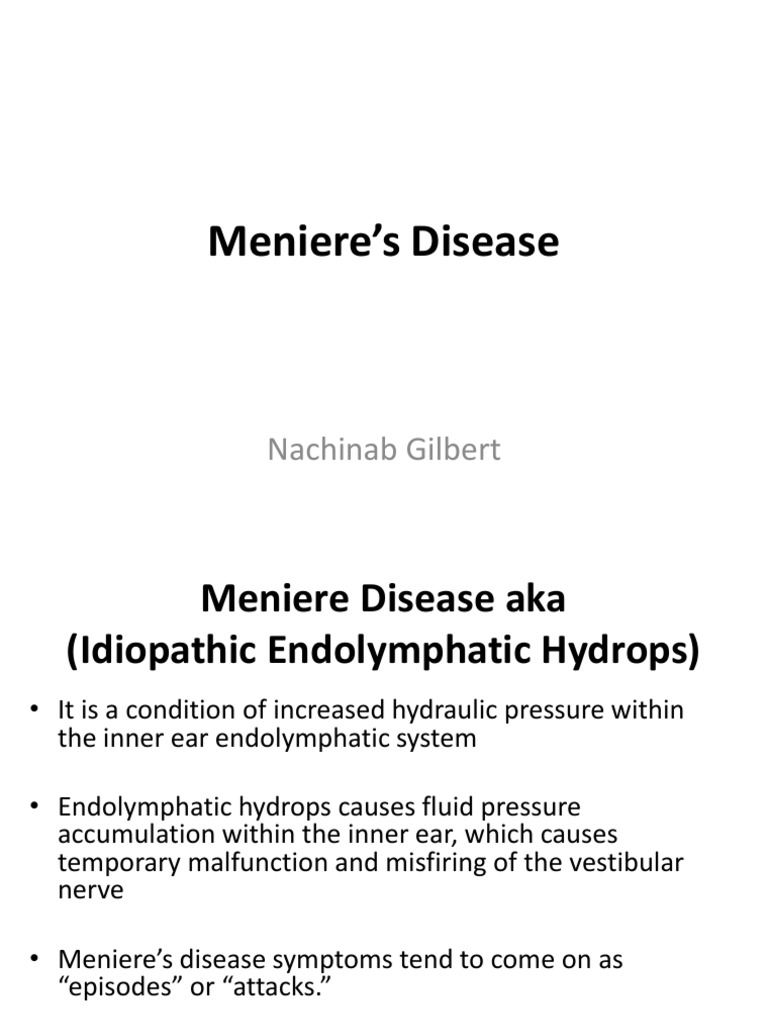 Which of the following preattack symptoms may a patient with Menieres disease report prior to an attack. Which of the following preattack symptoms may a patient with Menieres disease report prior to an attack. Nystagmus is an episodic symptom that occurs during an attack and at times the client is symptom free. Which of the following preattack symptoms may a patient with Menieres disease report prior to an attack. The priority nursing diagnosis for a patient experiencing an acute attack with Menieres disease is a. Tinnitus a roaring buzzing or ringing sound in the ear Sensation of fullness in the affected ear. You may develop permanent hearing loss andor permanent tinnitus in. A full feeling in the ear Which manifestation is the most problematic for the client diagnosed with Ménière disease. Rinne Question 2 Which symptoms may a client with Ménière disease report before an attack.