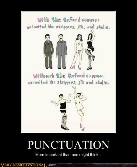 To be fair you and me do not need capitalisation here. If you think punctuation is not important try baking without it. - Punctuation is important. Baby sex is no joke Punctuation is important. Stop clubbing baby seals. See more ideas about bones funny humor funny pictures. Prev Next Slideshow You can use your keyboard arrow keys. The same holds true for apostrophes hyphens colons and other punctuation marks. An element of a culture or system of behavior that may be considered to be passed from one individual to another by nongenetic means especially imitation.